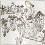 「文藝春秋」にて隔月で「山本容子の旅日記」を連載中。旅の思い出を描きおろし挿画とエッセイでお送りしています。 2009年6月号(5月11日発売)のテーマは「ハナショウブ」です。