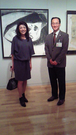 弥生さんとニコニコ笑顔です。 アートギャラリーのスタッフの皆様ありがとう・・・美術バイヤー亘理隆氏