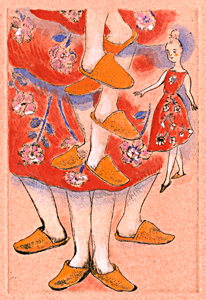 読売新聞夕刊「たしなみ」挿画連載中。 7月24日のテーマは、「スリッパのマナー」(楊・逸氏)です。
