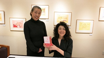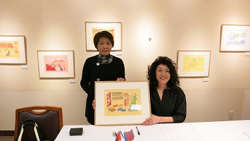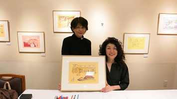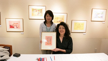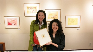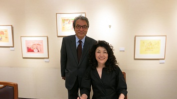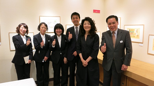 完成~!ロート製薬株式会社嶋田一浩経営企画本部室長とオールウェル計画推進室の中西澄子さん。お二人の優しく細やかなお心遣いに感謝。大変厳しい壁画制作でしたが、お二人やスタッフの皆様に癒されました。これぞALL WELL(みんな元気)、ロート製薬Smart Camp(スマートキャンプ)でございます。皆様も美と健康のパワースポットに是非お越し下さいね。