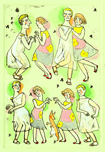 読売新聞夕刊「たしなみ」挿画連載中。 2014年7月29日のテーマは、「アッパッパのマナー」(東直子氏)です