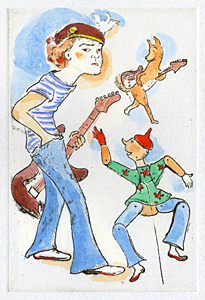 読売新聞夕刊「たしなみ」挿画連載中。 2014年9月9日のテーマは、「ロック歌手のマナーー」(さだまさし氏)です