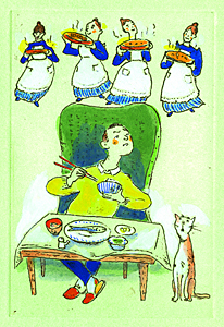 読売新聞夕刊「たしなみ」挿画連載中。 2014年11月11日のテーマは、「食べるのマナー」(さだまさし氏)です