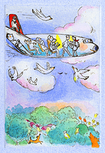 読売新聞夕刊「たしなみ」挿画連載中。 2015年4月28日のテーマは、「飛行機のマナー」(柴崎 友香氏)です。