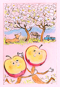 読売新聞夕刊「たしなみ」挿画連載中。 2016年2月16日のテーマは、「りんごのマナー」(ねじめ 正一氏)です。