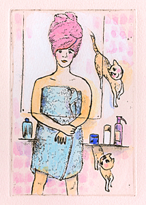 読売新聞夕刊「たしなみ」挿画連載中。2017年6月6日のテーマは「バスタオルのマナー」(星野博美氏)です。