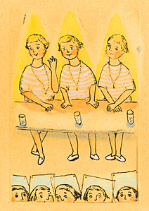 読売新聞夕刊「たしなみ」挿画連載中。2017年6月20日のテーマは「人前で話すマナー」(島本理生氏)です。