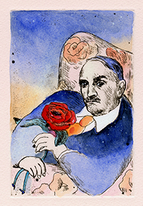 読売新聞夕刊「たしなみ」挿画、2020年5月12日のテーマは「薔薇をささげるマナー」恩田侑布子さんです。