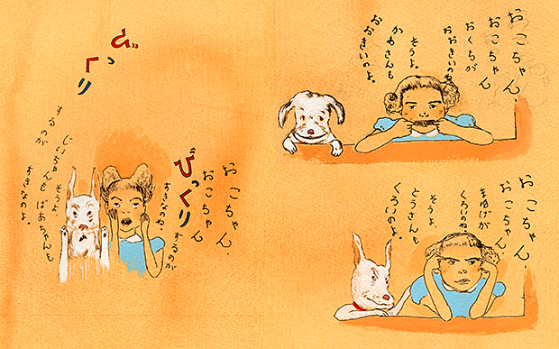 夕方、ゴローと海から帰る時、ワンピースのすそを広げて子犬をひろって帰っては、