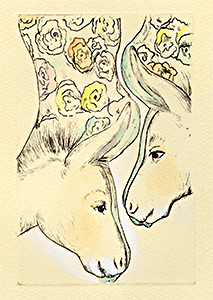 今展では、キャンバスに銅版で刷った『プラテーロとわたし』の書籍原画全28点をご覧いただくとともに、新作版画、書籍になった版画、関連書籍、CD、グッズ等を販売いたします。是非お出かけくださいますようお待ち申し上げます。