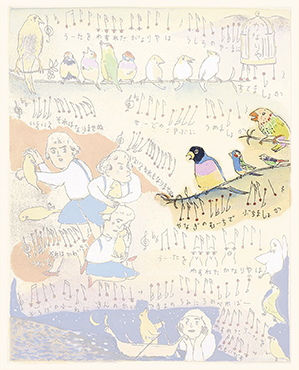 『月の砂漠』1999年 ソフトグランド・エッチング、グワッシュ / 紙 20×16cm ©️Yoko Yamamoto