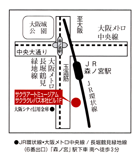 アクセス:JR森ノ宮駅下車、徒歩3分。地下鉄中央線・長堀鶴見緑地線森ノ宮駅下車、6番出口より徒歩3分。