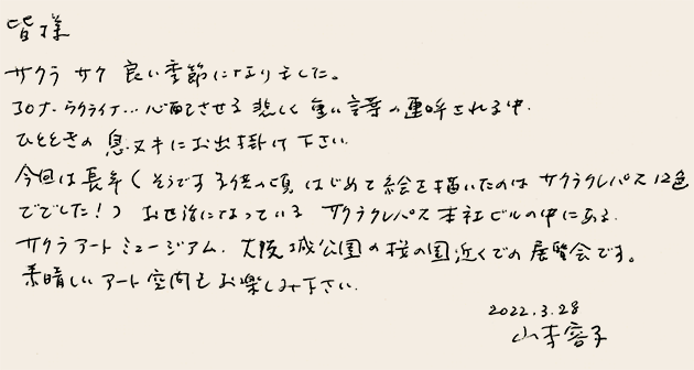 開催場所:サクラアートミュージアム 〒540-8508 大阪市中央区森ノ宮中央1-6-20 (サクラクレパス本社ビル内)
