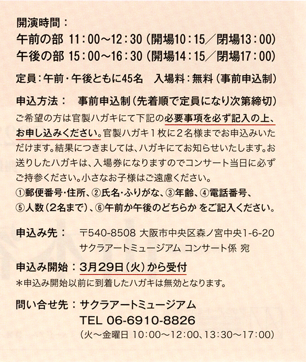 サクラアートミュージアム コンサート係 宛