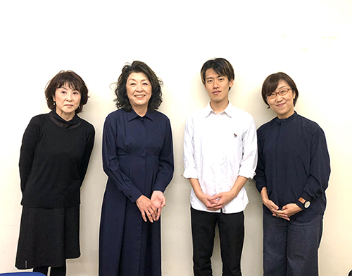 両端の女性は当時の秘書たち。白シャツの青年は21歳のアーティスト、現在のスタッフ、桃君。