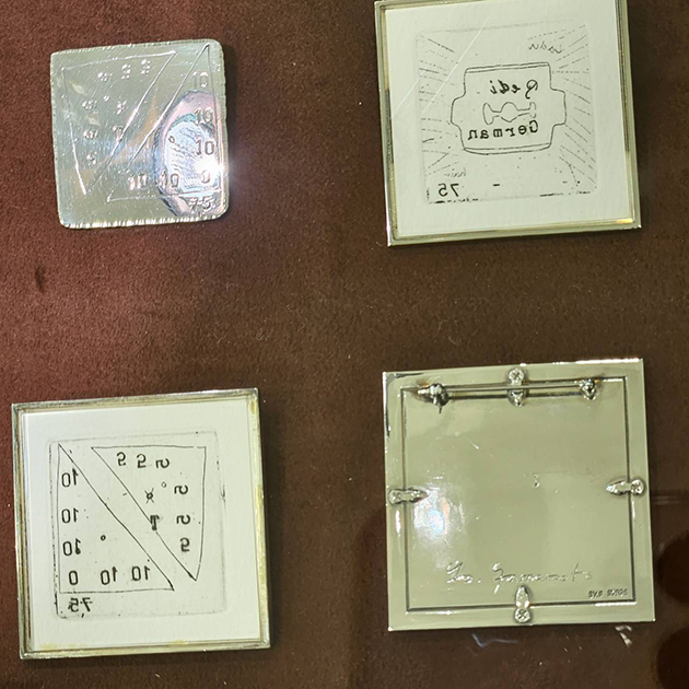 1975年23歳ではじめて発表したモノクロの大きい版画と、1992年40歳の私は、シルバーの額に小さい版画を入れてアクセサリーとして発表しました。