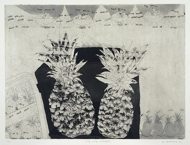 「Ping Pong Pineapple」1977 etching, aquatint ©Yoko Yamamoto