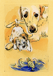 読売新聞夕刊「たしなみ」挿画、2022年2月9日のテーマは「犬を育てるマナー」小川糸さんです。