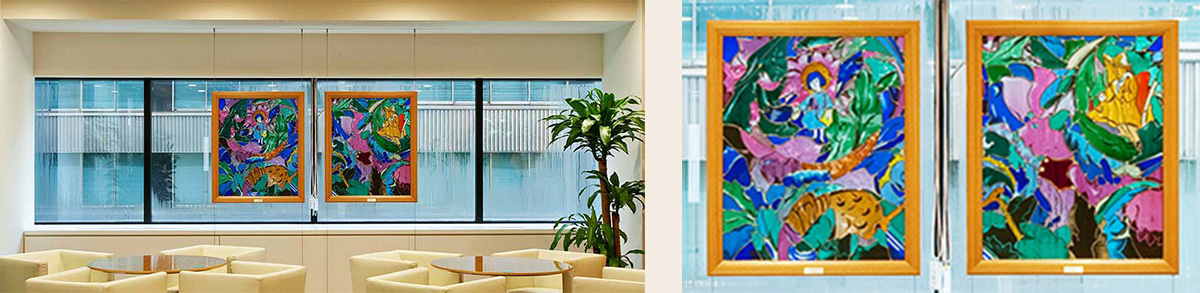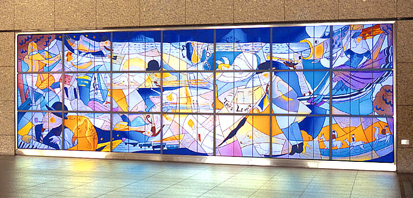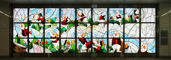 JR東日本東京支社ビル 3Fロビー ステンドグラス《エリック・サティの休日》 縦2500×横7200mm