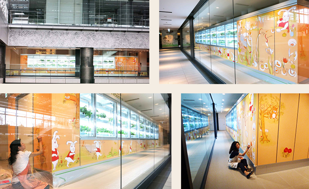 ロート製薬グランフロントビル「シティファーム旬穀旬彩」壁画《緩やかな対話》 縦1980×横16500mm