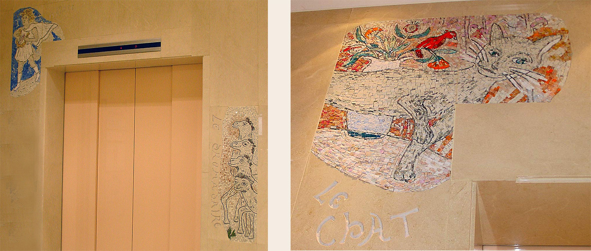 岩田屋Z-SIDE(福岡)内エレベーターホール モザイク壁画《アポリネール動物詩集》