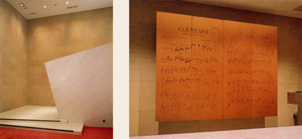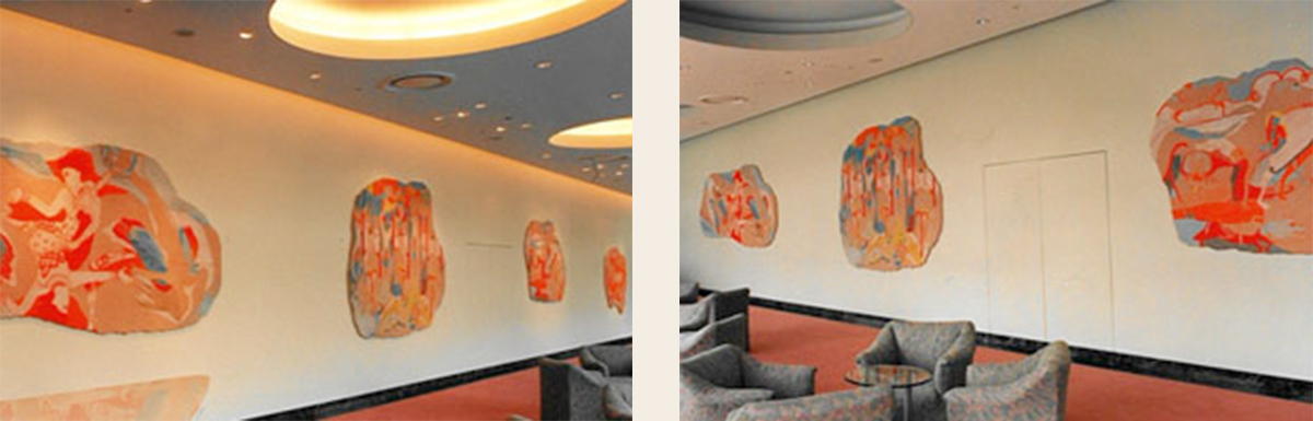すみだトリフォニーホール(東京)小ホール ホワイエ壁画《音楽のつつましい願い》、銅板レリーフ《CLEMENCE》