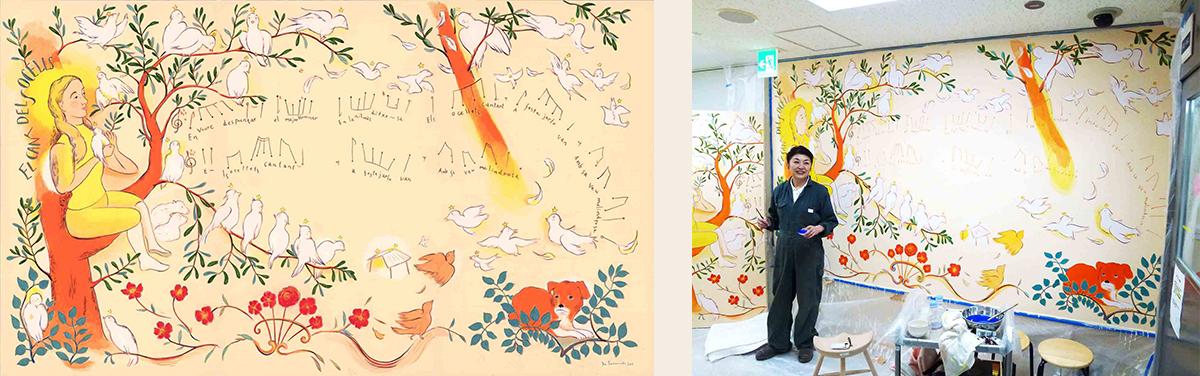 和歌山県立医科大学附属病院 産婦人科病棟NICU室壁画 《鳥の歌》 アクリル画 縦1900×横3230mm