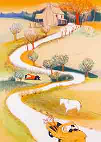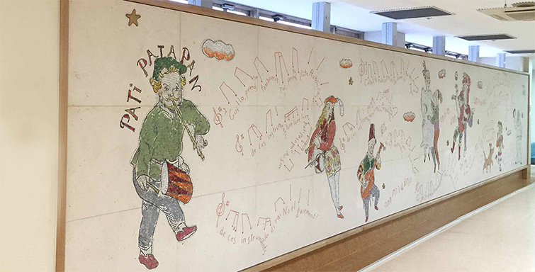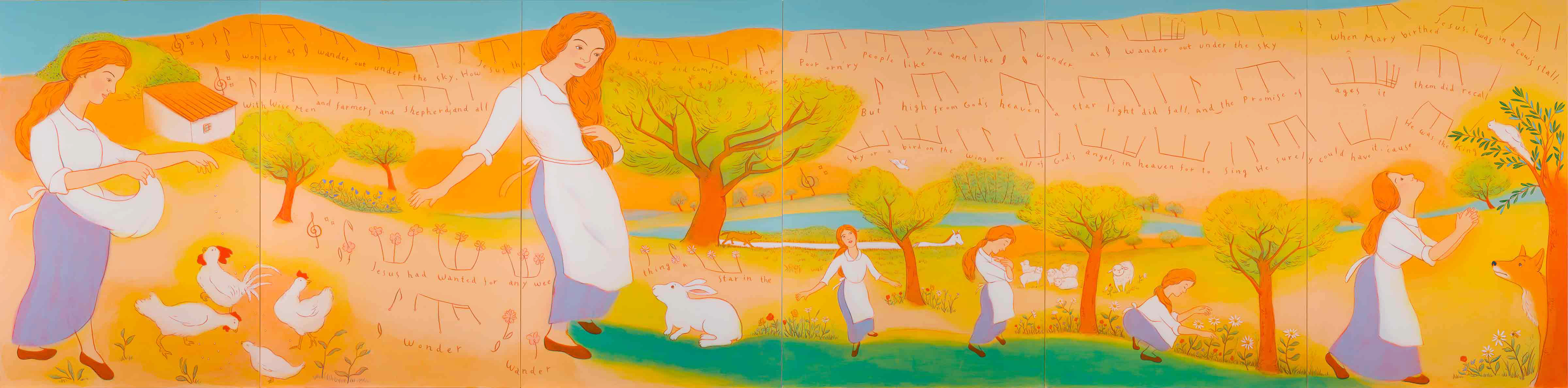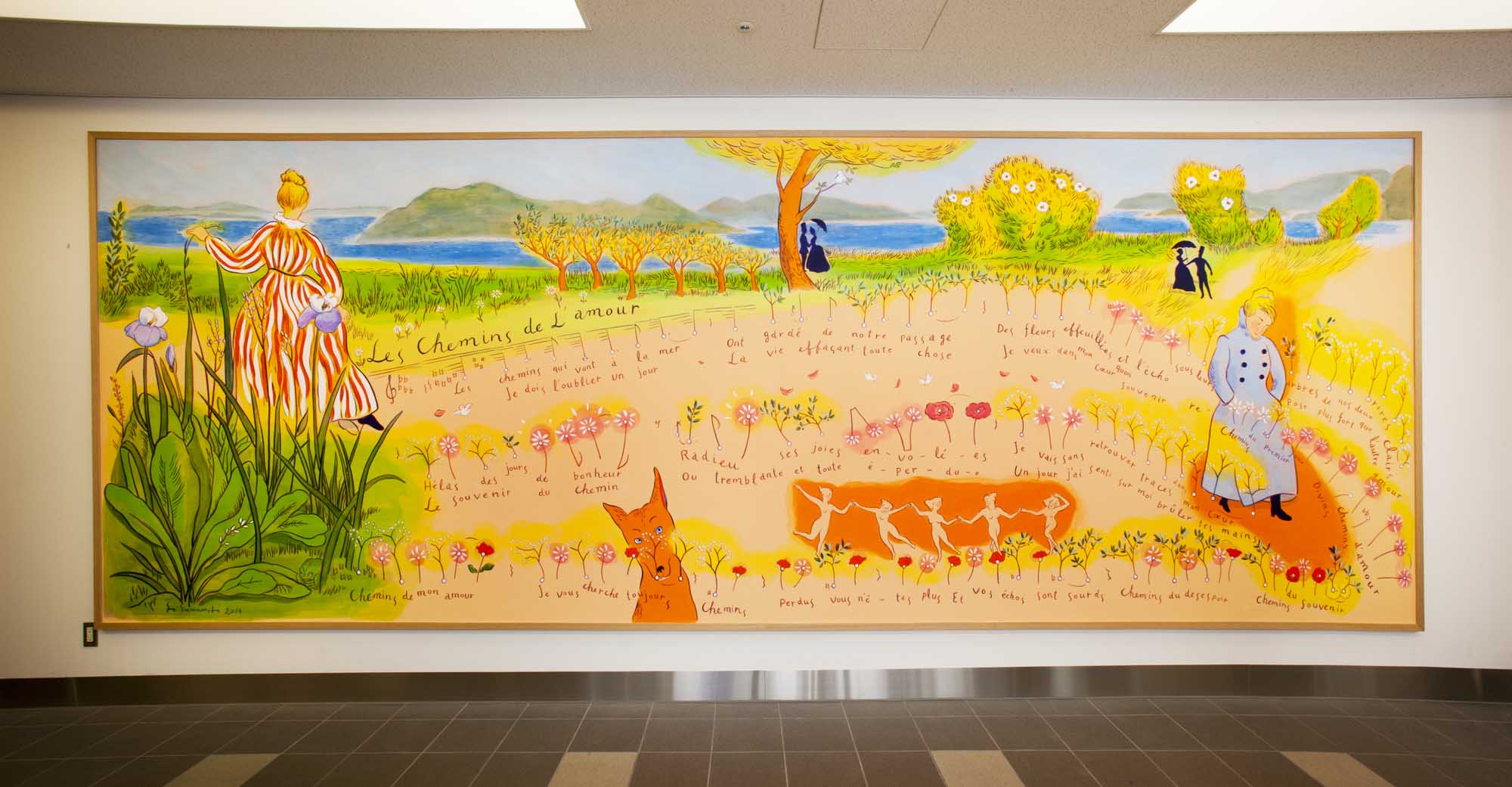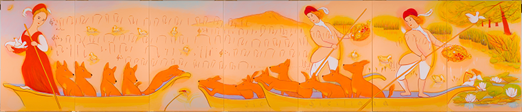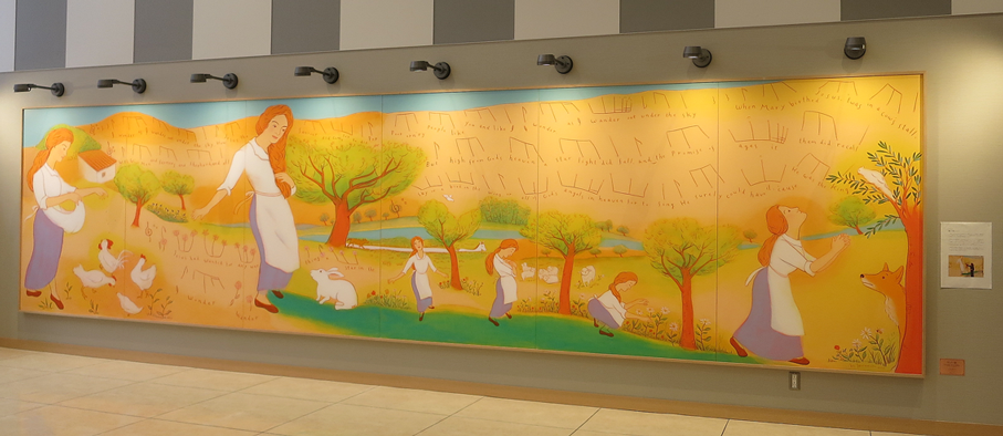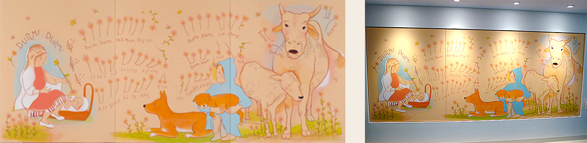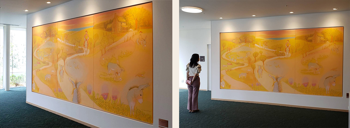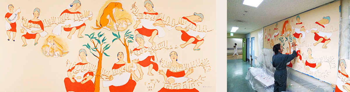 和歌山県立医科大学附属病院 産婦人科病棟分娩室・授乳室壁画 《オーヴェルニュの子守歌》 アクリル画 縦1425×横3495mm