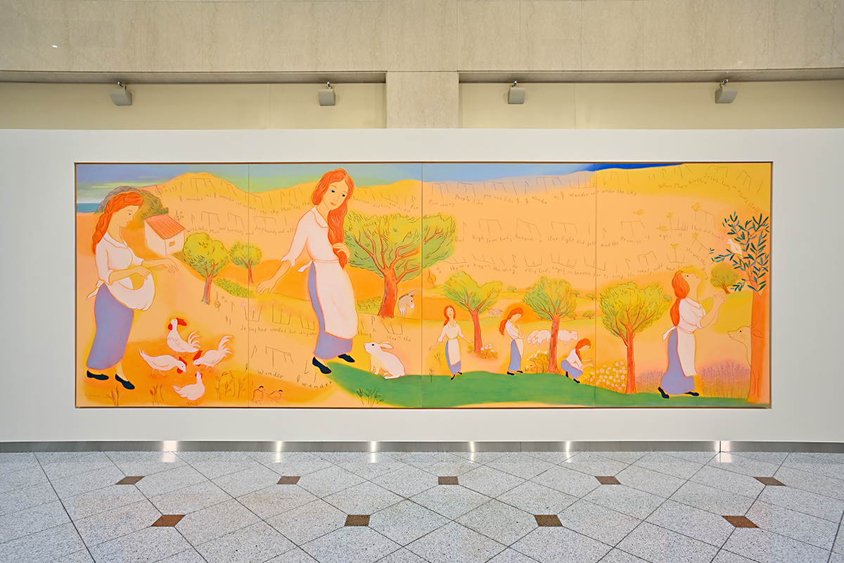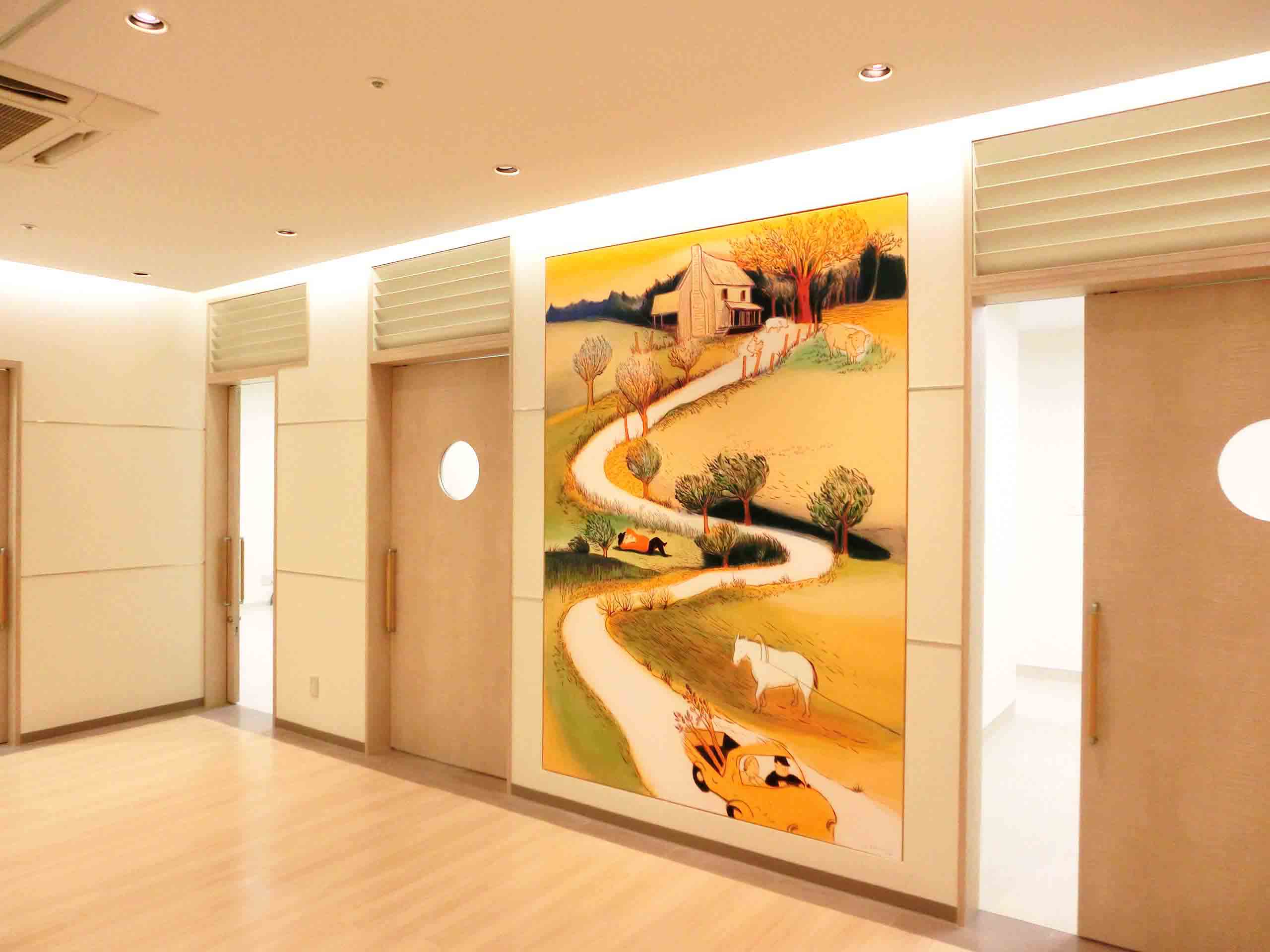 高松赤十字病院 西玄関壁画 《愛の小径》 アクリル画 縦2273×横6484mm
