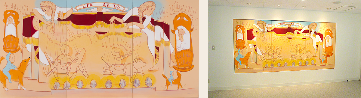 加古川中央市民病院 産婦人科病棟壁画 《おやすみ、おやすみ》 アクリル、キャンバス 縦1621×横3909mm