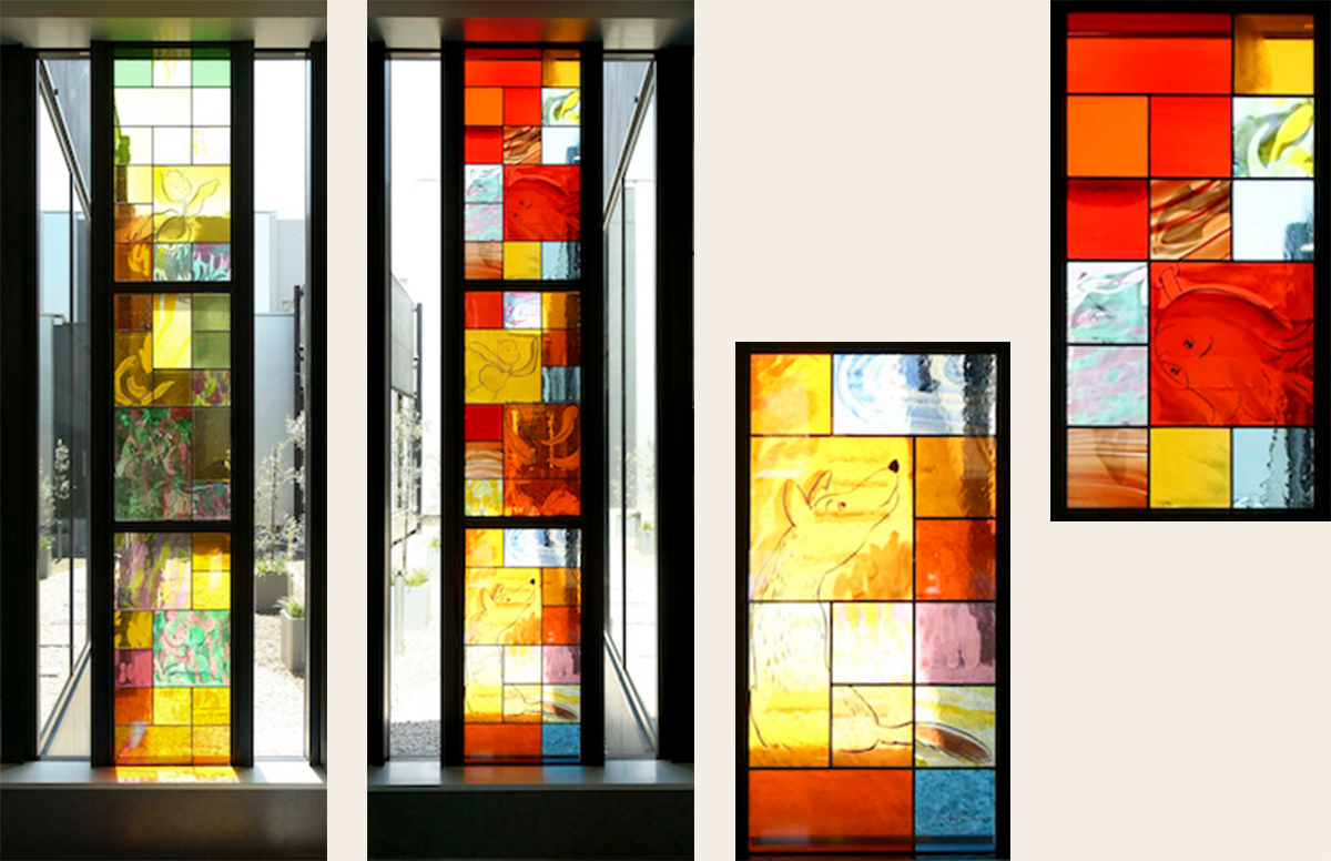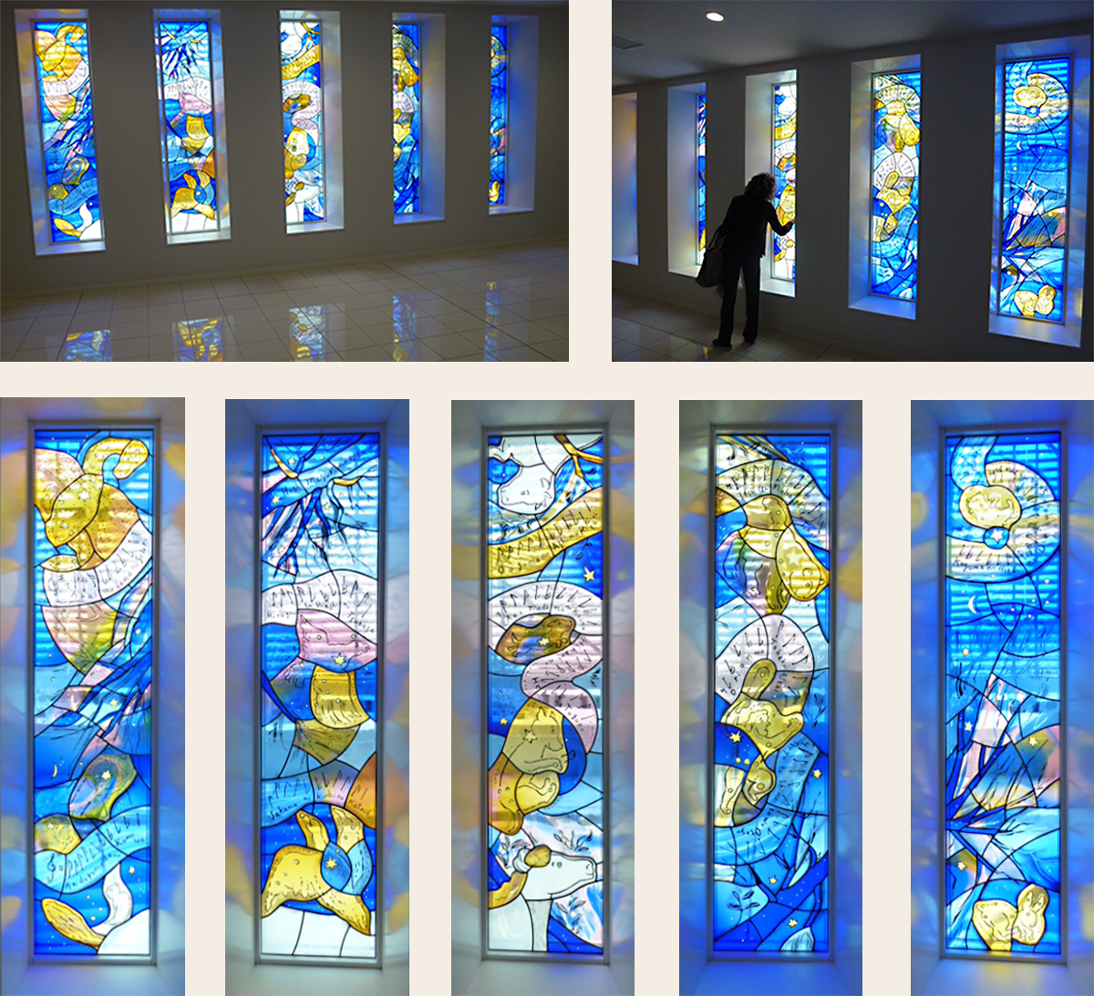 埼玉県立小児医療センター霊安室 《Angel's room 星のうた》 ステンドグラス 縦2160×横480mm×5点(壁を含む全長縦2160×横5280mm)