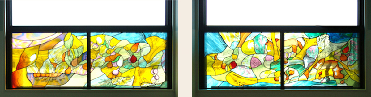 前橋赤十字病院 1階本館から外来棟への通路 左右共《光の詩》ステンドグラス 縦2980×横560mm